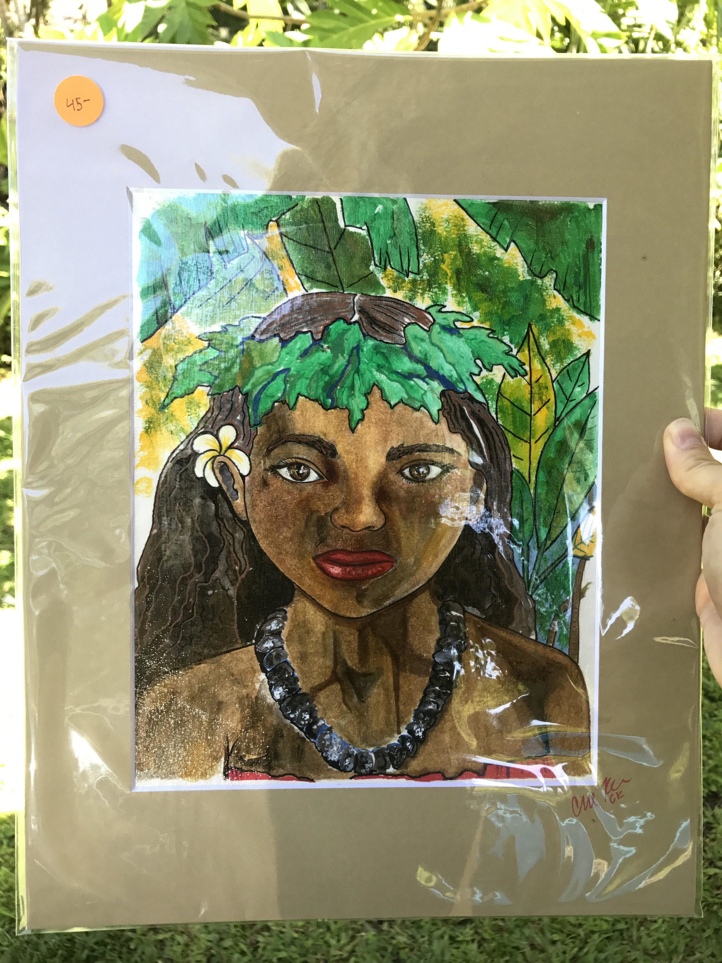 A regular Photo print of "two Hala trees" gets a makeover with Acrylic paint pens and Modge Podge.